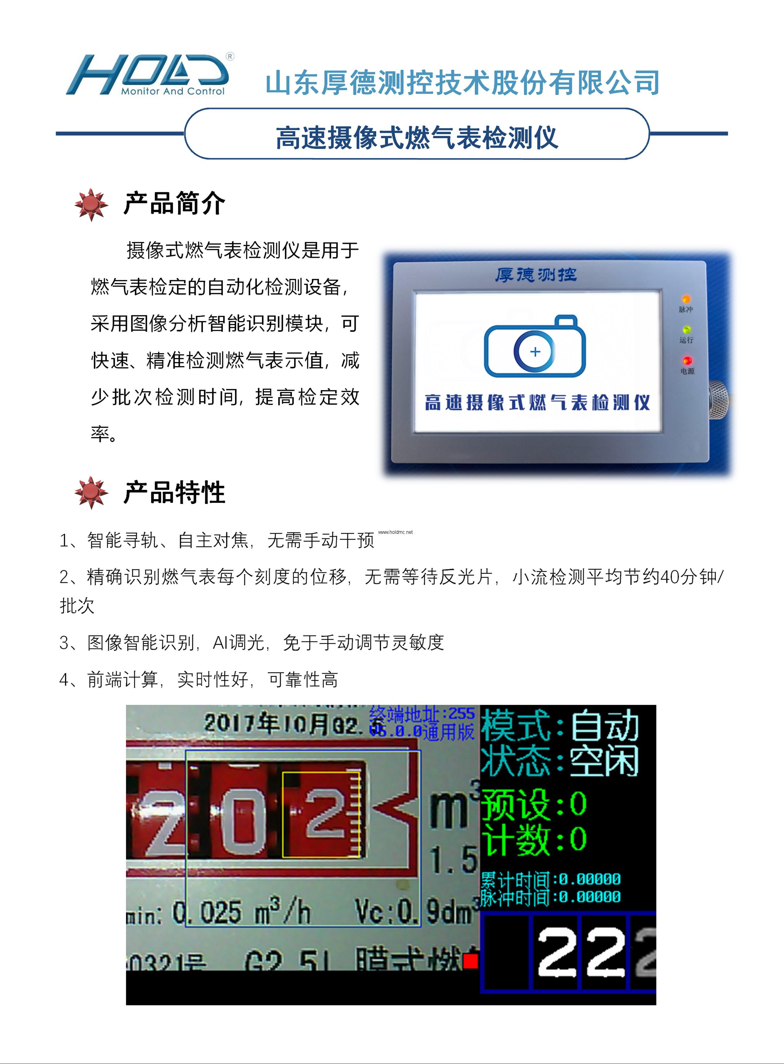 本產(chǎn)品主要用于對(duì)燃?xì)獗碛?jì)量精度進(jìn)行檢定,使用圖智能化處理方法,對(duì)燃?xì)獗頂?shù)字和刻度進(jìn)行自動(dòng)識(shí)別,因此相較于傳統(tǒng)色標(biāo)傳感器,可以顯著的節(jié)約時(shí)間,實(shí)現(xiàn)高精度讀表。